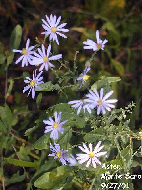 The Aster is a very common fall flower usually with bluish petals and a yellow center. The genus has many species, making identification of individual plants or colonies difficult.